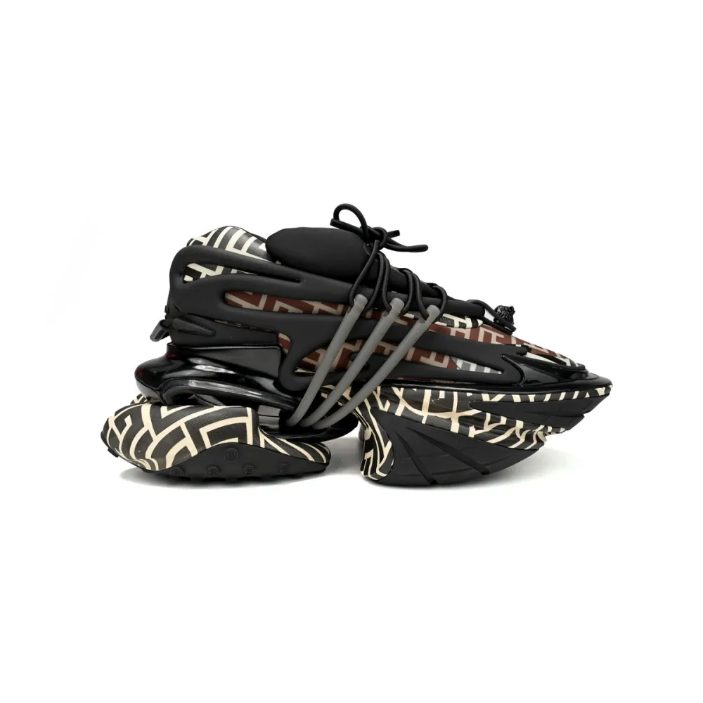 Elevate your style to the next level with the BALMAIN Multikolor Buty sportowe Lattice sneakers. These exquisite shoes feature a sleek black upper adorned with the iconic Unicorn embroidery, exuding a bold and luxurious aura. Crafted from premium materials, they provide exceptional comfort and support, ensuring you make a statement wherever you go. With their timeless design and exquisite craftsmanship, these Balmain sneakers are the perfect addition to any discerning wardrobe.