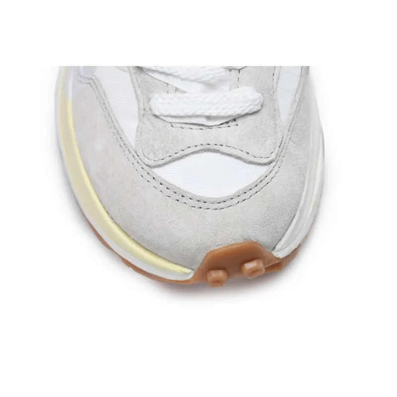 The Nike Vaporwaffle sacai Sail Gum features a Sail nylon upper with light grey suede overlays and tumbled leather Swooshes. Doubled tongues and Swooshes continue sacai's design ethos of reconstruction. At the base, a stacked foam midsole atop a gum outsole completes the design.